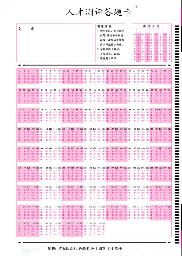 目前本公司答題卡的種類有:全國統一考試標準答題卡,心理測試答題卡,干部測評答題卡,選舉用答題卡,教育評估答題卡,學籍管理卡.......